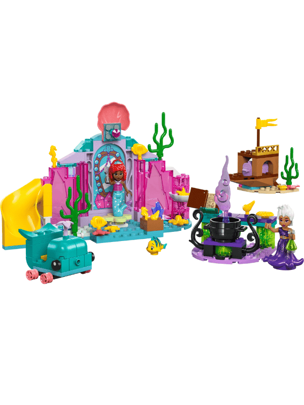ילדיכם ייהנו לבנות את המערה המפורטת, הכוללת משטח מסתובב מגלשה, רכב לוויתן, ספינה טרופה עם תיבת אוצר וקדירה. הערכה כוללת גם דמויות מיני בובות של אריאל, אורסולה ודמות פלנדר הדג המתוק. עם מגוון אפשרויות, ילדיכם יוכלו לשחזר סצנות אהובות מסרטי בת הים הקטנה או ליצור סיפורים חדשים משלהם. לבני 4 ומעלה. מכיל 141 חלקים