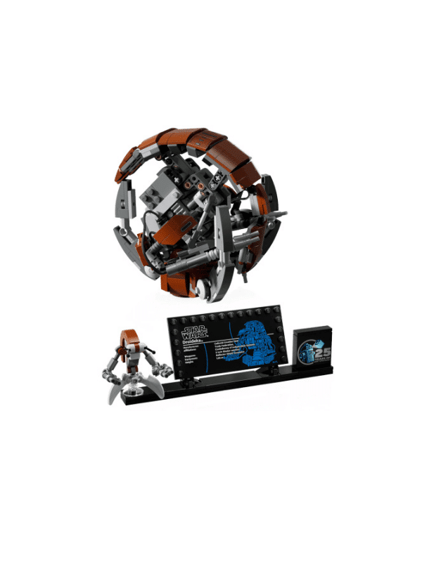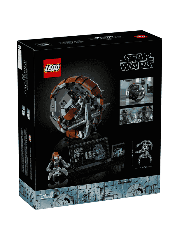 דמות דרואידקה המורכבת מלבנים מתנשאת לגובה של מעל 21 ס"מ מלאה פרטים מדמי מציאות כוללים זרועות של דרואידקה. את הזרועות ניתן להזיז לאחור ולקדימה בתנועת הכנה לירי, בנוסף ניתן לחבר מחדש את הרגליים כדי לשנות אותו ולהקנות לו צורת כדור אייקונית. להשלמת המראה של פריט התצוגה, ערכת הרכבה יצירתית זו כוללת גם מעמד עם לוח מידע, לבנה בערכה וגם דמות קטנה של דרואידקה . 583 חלקים. לגליאי 18+